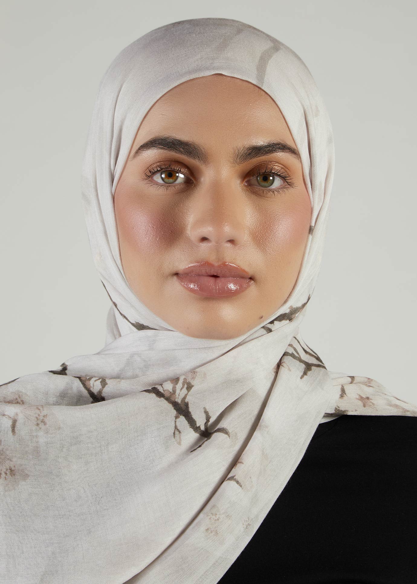 Designed in-house and exclusive to Aab, these printed hijabs feature original artwork by our London College of Fashion graduated designer, completed with a subtle Aab logo finish.