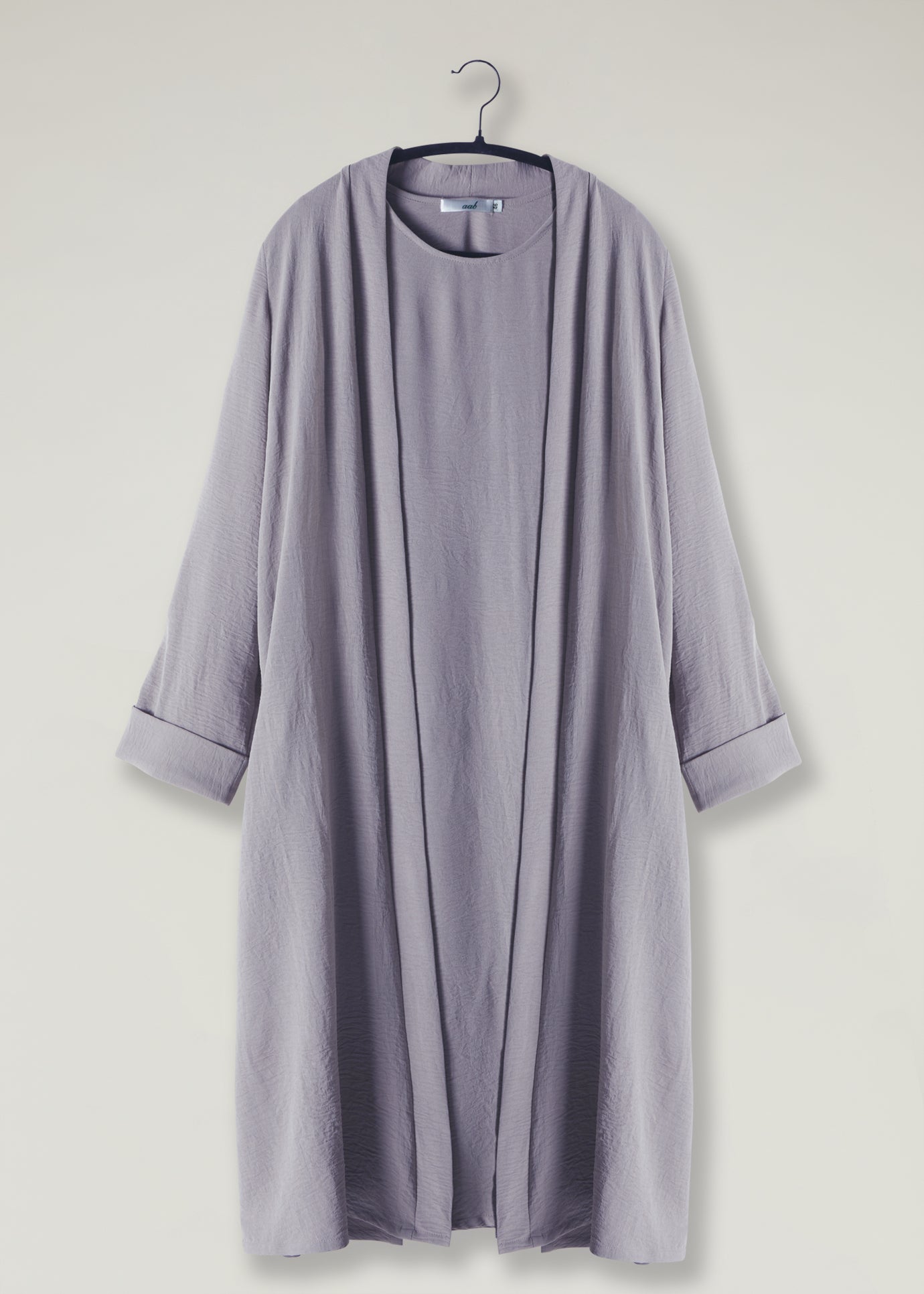 This elegant Two-Piece Open Abaya set includes a Full Sleeve matching slip. Perfect for everyday wear, it can also be dressed up with accessories for an evening look. The full sleeve slip dress can be worn as a maxi dress on its own or paired with the open abaya for a stylish ensemble.