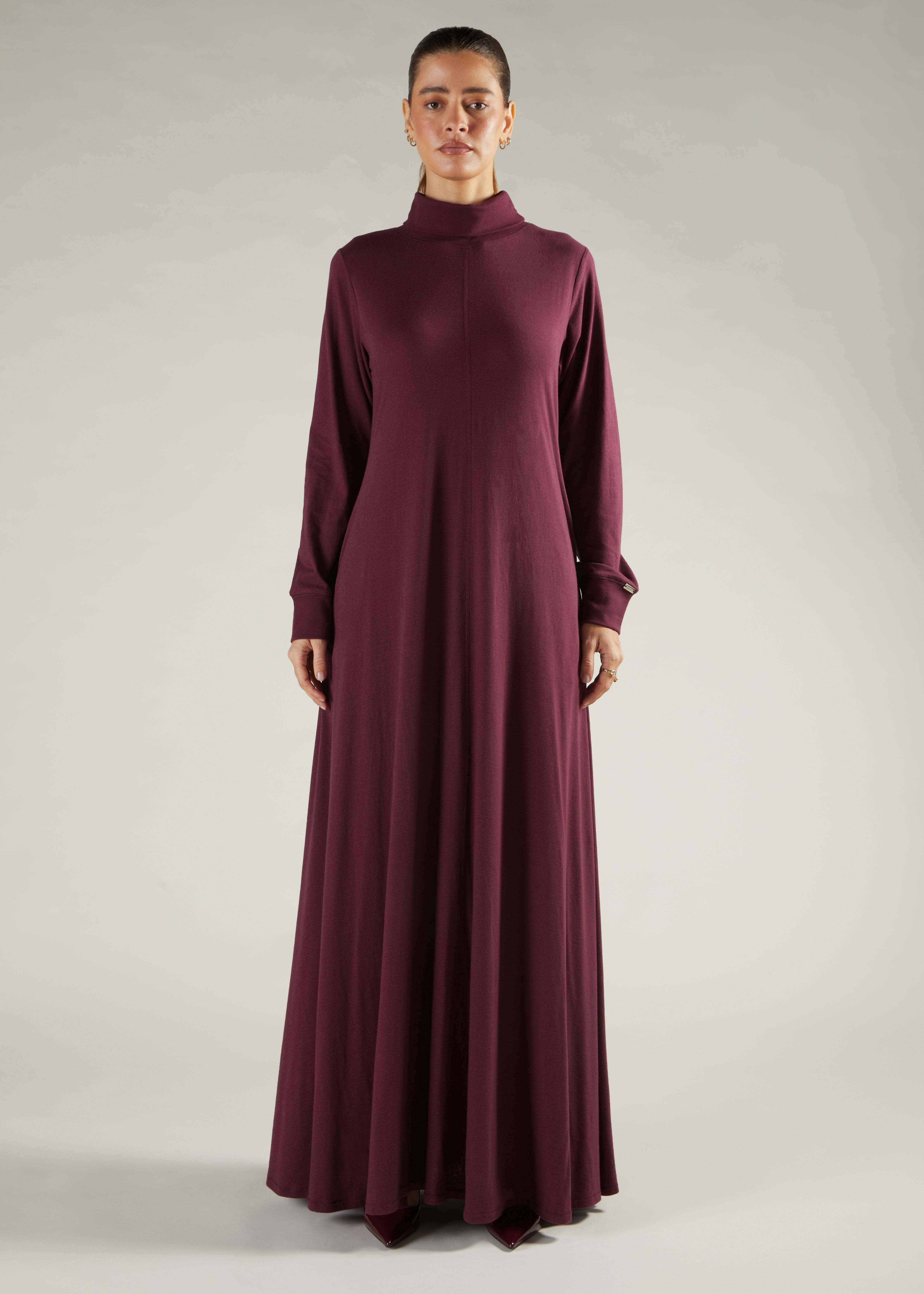 This abaya combines comfort with style, featuring a high neckline and a flowing skirt that flatters your silhouette. Made from soft 100% cotton jersey, it's easy to wear over other pieces when you need extra warmth. Perfect for creating layered looks throughout the colder months.