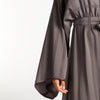 This exclusive Abaya boasts a loose, modest fit with a concealed back zip that adds a flattering touch to the fluid, free-flowing design. The exaggerated sleeves, complete with an inner button to prevent rising up, make this a perfect choice for any occasion.